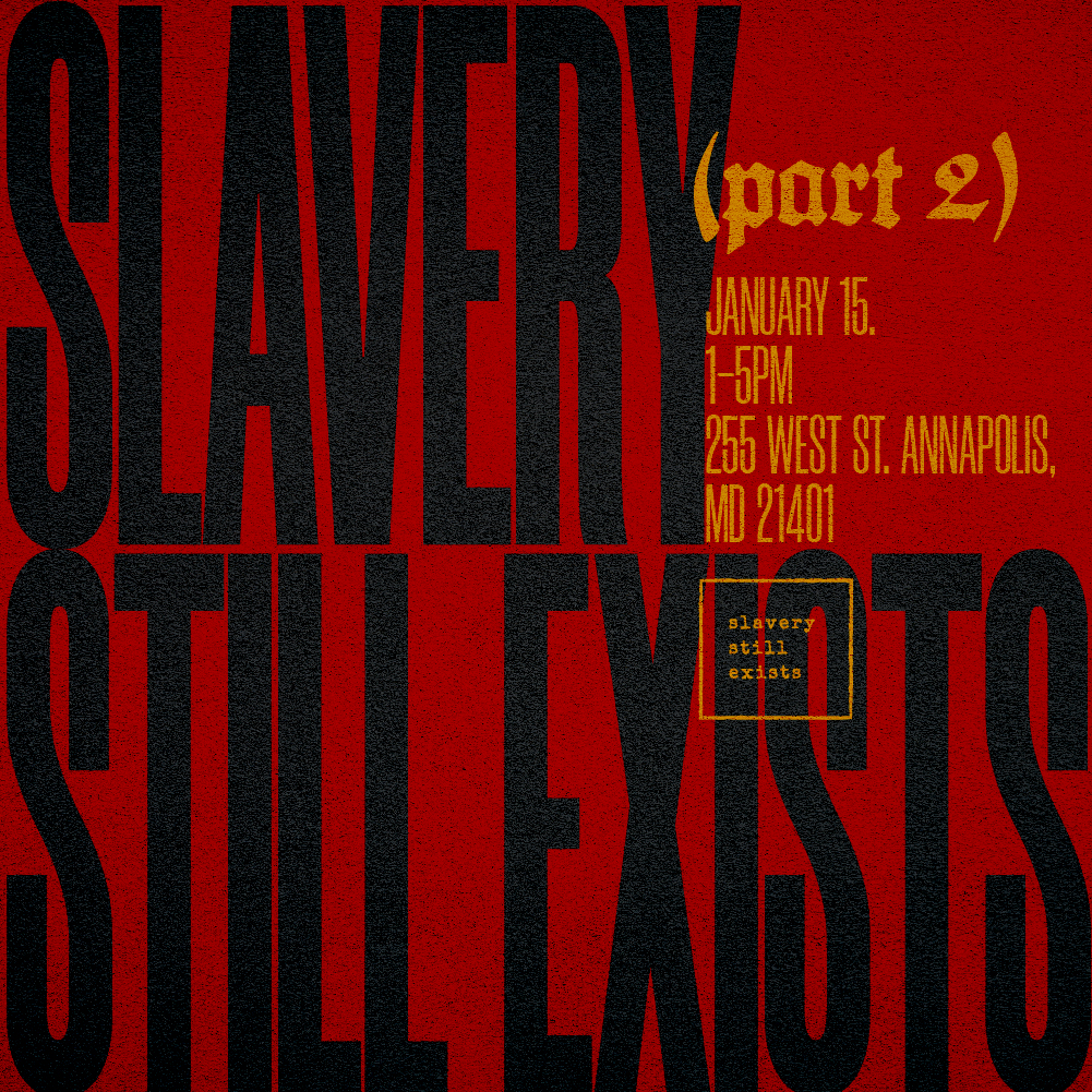 Once a year, we host a pop-up art exhibition in Annapolis, Maryland. We recruit professional artists to display art based on modern slavery.